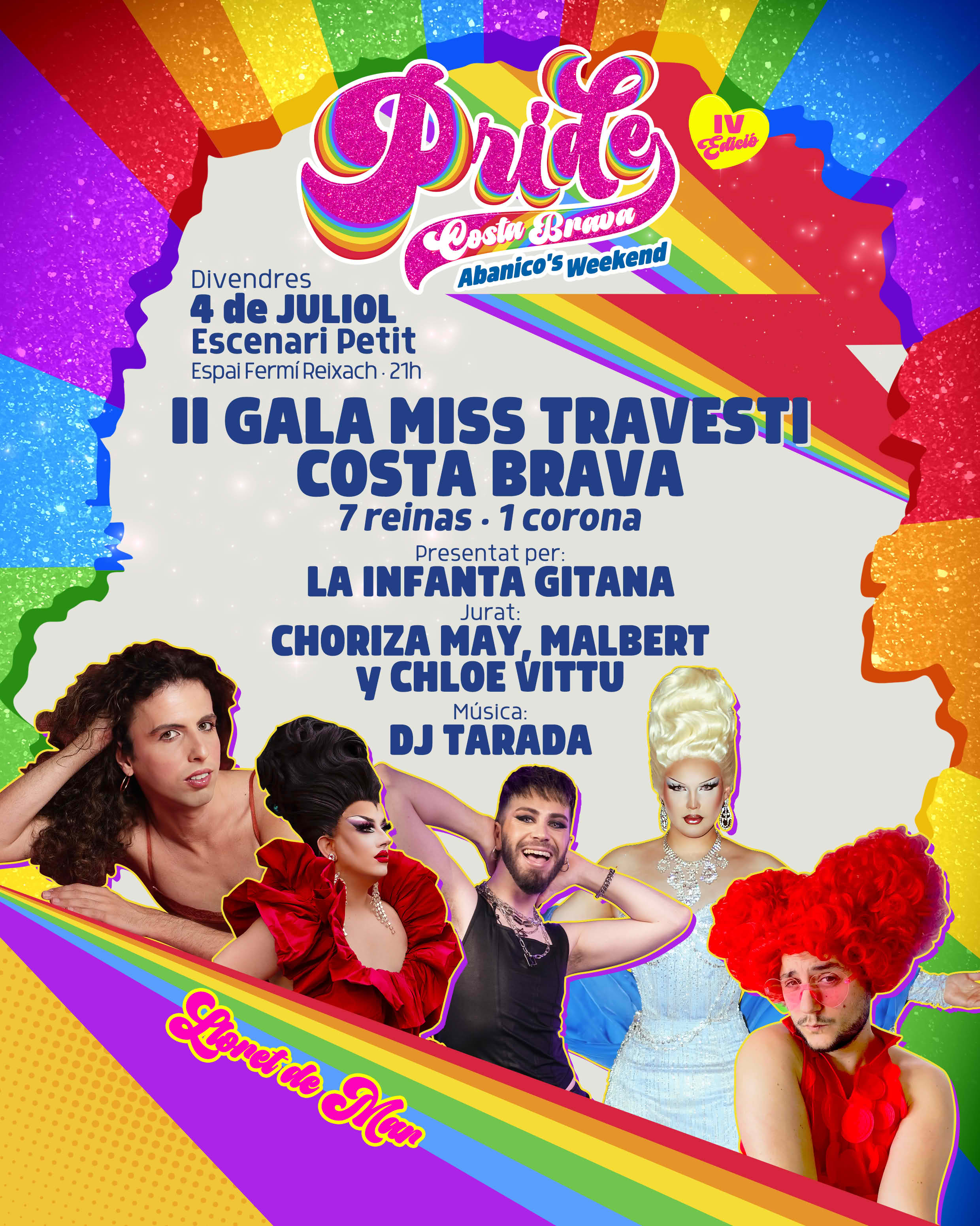 II Gala Miss Travesti Costa Brava. 7 reines - 1 corona Presentat per la Infanta Gitana. Jurat: Choriza May / Malbert / Chloe Vittu Música: DJ Tarada