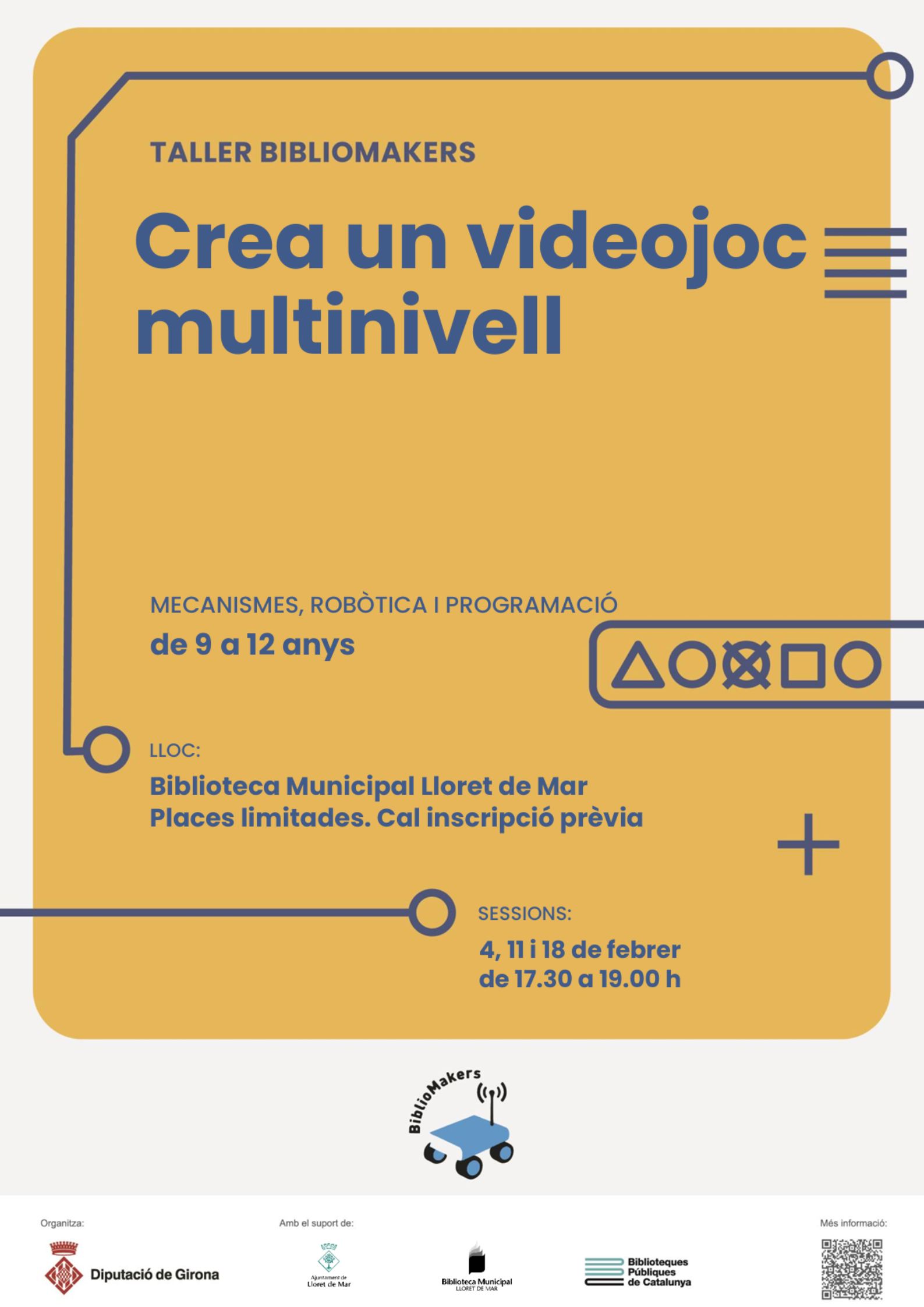 Taller “Experimentem amb les STEAM” (Mecanismes, robòtica i programació). Primera sessió: robòtica i primeres construccions. Aprendre què és un robot i primers mecanismes. Segona sessió: Seqüències i bucles. Els engranatges. Aprendre a programar seqüències i bucles. Primers mecanismes: els engranatges Tercera sessió: Dibuixem amb el robot. Aprendre a programar seqüències i bucles. Primers mecanismes: politges. Totes les sessions es faran dimecres a les 17.30 h. Edat: de 4 a 5 anys. Durada de les sessions: 1h 30. Cal inscripció prèvia. Gestionat pel Servei de Biblioteques de la Diputació de Girona.