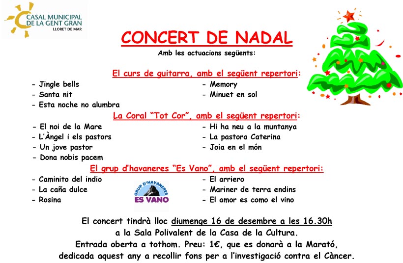 Amb la participació de la Coral Tot Cor, el grup d'havaneres Es Vano i el curs de guitarres del Casal.