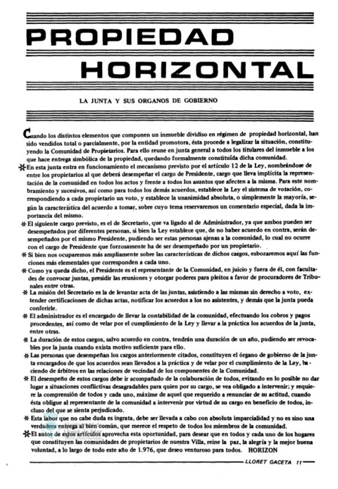 voluntad, a lo largo de todo este ailo de 1.976, que deseo venturoso para todos. HORIZON
