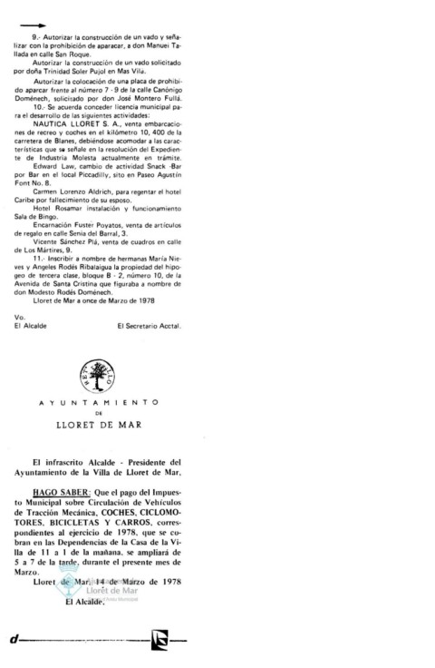 Lloret de Mar, 14 de Marzo de 1978